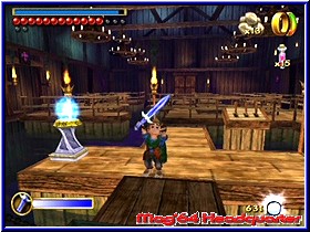 Alle Jahre zu Weihnachten sorgt die Herr der Ringe Story für volle Kino Kassen und allen Firmen die Herr der Ringe Artikel in irgendeiner Form unter die Leute bringen. Das gilt natürlich wieder vornehmlich für die Spieleindustrie, wo nicht zuletzt EA mit seinen Spielen für Umsätze sorgt. Aber es gibt eine weitere Firma die eine Herr der Ringe Lizenz besitzt und nach dem GBA nun auch auf dem GCN ausspielt. Mit Der Hobbit bringt zum einen die Firma Vivendi ihren Teil auf den Markt und eine lange verschwundene Softwareschmiede der alten Zeit kommt mal wieder aus der Versenkung hervor. Gerade Adventure Fans dürft der Name Sierra noch gut in Erinnerung liegen. Entwickelt wurde das Spiel allerdings für den GCN von der recht unbekannten Schmiede Inevitable. Im letzten Jahr hatten wir auf Vivendi's Spring Fair in Berlin schonmal die Gelegenheit zum einen das Spiel anzutesten und vor allem mal ein Wort mit den Entwicklern zu wechseln. Positiv ist damals hängen geblieben das die Entwickler endlich auch mal zugaben in einigen Bereichen von einem Zelda inspiriert worden zu sein. Macht ja nun auch nicht jeder. Hier gab man das offen zu und packte also das Herr der Ringe Thema in ein Adventure im Zelda Stil, das dennoch genug eigene Aspekte mitbringt. Eines allerdings wurde nicht mehr umgesetzt. War damals noch die Rede von einem GCN-GBA Link, so ist dies in den finalen Produkten nicht mehr enthalten. Eigentlich schade und hätte sich auch hier angeboten. Das Einzelspieler Game Der Hobbit führt den Spieler in die Geschichte vor der eigentlichen Trilogie, die Fans mittlerweile in und auswendig kennen dürften. Wie der Titel schon sagt spielt auch hier ein Hobbit die Hauptrolle und der Spieler schlüpft in die Rolle von Bilbo Beutlin aus dem Auenland. Hintergrund ist hier der Drache Smaug, der den Zwergen alle Schätze gestohlen hat. Eines Tages sinnen die Zwerge auf Rache und wollen sich auf den Weg zum Einsamen Berg machen, wo sie Smaug zu finden hoffen. Hier tritt der gute Gandalf nun auf den Plan und überzeugt die Zwerge den kleinen Bilbo Beutlin mitzunehmen mit dem Hintergrund er können ihnen nützlich sein. Nicht unbedingt angetan willigen die Zwerge ein und Bilbo macht sich nun mit den Zwergen auf den langen beschwerlichen Weg. Das Spiel bietet zunächst keinen 60Hz Modus, was sich hier nicht so sehr auswirkt. Die Memory Card wird mit 32 Seiten dagegen recht heftig belegt und bietet im Spiel später 4 unterschiedliche Savegames an. Startet man das Spiel erwartet den Spieler auf dem Hauptmenu zunächst nur die Möglichkeit das Spiel zu starten, ein gespeichertes zu Laden sowie in den Optionen nach dem rechten zu sehen. Dort findet man neben Sound und Rumble Einstellungen vor allem viele Kameraoptionen. In dem Sinne das man die Drehung der Kamera nach den verschiedenen Achsen einstellen kann.