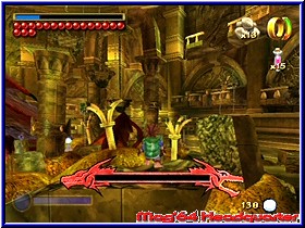 Immer wenn man einen neuen Kreis erspielt hat füllt sich die komplette Anzeige was später immens wichtig sein kann. Ebenfalls etwas ungewöhnlich ist das Rücksetzsystem gemacht. Ihr findet im Spiel relativ häufig Speicherpodeste die man tunlichst jedesmal nutzen sollte. Denn man hat zwar unendlich Continues, beginnt aber bei einem Ableben sofort am letzten gespeicherten Punkt. Andere Rücksetzpunkte gibt es nicht. Auf jeden Fall aber sehr gut positioniert um nicht frustriert irgendwo hängen zu bleiben. Das ist eine nicht zu unterschätzende Stärke des Spiels. Man denkt bei der Anzahl an Speicherpunkten müßte man doch schnell durch das Spiel kommen. Nee, eben nicht. Die Länge des Spiels gleicht das allemal wieder aus. Dazu kommen neben dem Aufpowern der einzelnen Moves weitere erweiterbare Punkte. So könnt Ihr am Anfang z.b. 5 Heiltränke oder Giftränke tragen. Dazu 10 Steine die man werfen kann. Durch das einsammeln sogenannter Silberpennys, die ebenfalls neben dem Kristallen überall zu finden sind kann man diese Dinge upgraden und schlußendlich 15 Heiltränke oder 30 Steine tragen. Ebenfalls erst ab der Hälfte des Spiels spürt man das dies wichtig ist und gepusht werden muß. All diese Dinge wie Anzahl der Tränke, Steine oder Moves kann man sich im Pausenmenu ebenfalls in einer entsprechenden Rubrik anschauen, wobei Tränke und Steine auch auf dem Spielscreen auftauchen. Eine weitere spielerisch gelungene Sache ist der Ring, den Bilbo finden kann. Mit ihm kann er sich nämlich unsichtbar machen. Für eine bestimmte Zeit leert sich eine Anzeige und Ihr könnt an Gegnern vorbeilaufen, die euch erahnen und spüren aber nicht sehen. Berührt Ihr sie nicht kommt Ihr auch vorbei. Sieht immer wieder Klasse aus wenn die Burschen nach euch suchen, aber nicht sehen. Viele Quests und Aufgaben sind nur so zu lösen, so das man dieses Feature eben auch abwechslungsreich eingebaut hat. Freunde des Tarnens und Schleichens kommen auch hier auf eure Kosten. Die Welten an sich spielt man nacheinander, was sicherlich der größte Unterschied zu einem Zelda ist. Zwischen ihnen wechseln geht bis zum Schluß nicht. Am Ende eines jeden Levels bekommt man eine Statistik was und wieviel man wovon erreicht hat. Auch hier senkt sich die Erfüllungsrate gegen Ende immer mehr, da das Spiel dann immer mehr fordert. Wobei das Spiel sich in Sachen Leveldesign von 2 Seiten zeigt. Es gibt Welten in denen ist der Weg eigentlich immer recht klar und mit wenig Verzweigungen versehen. Dafür sind diese sehr lang und selbst das lineare durchqueren dauert. Auf der anderen Seite haben es mir vor allem 3 Welten angetan. Neben einer riesigen Ork Höhle, die immens nach oben und unten geht mit unzähligen vor allem mechanischen Abhängigkeiten sind dies am Ende der Berg und die Stadt der Zwerge. |