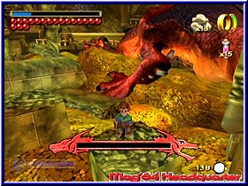 Vor allem beim Drachen Smaug hat man eine richtig knisternde Spannung hinbekommen, da man sich hier innerhalb der riesigen Halle mit unzähligen Etagen nur vorsichtig bewegen darf. Eine Leiste im Screen zeigt an wieviel Geräusche man macht und wann der schlafende Drache aufwacht. Dabei z.b. Truhen anzusteuern, Items und Kristalle zu holen und sich überhaupt erstmal zurechtzufinden ohne entdeckt zu werden spielt sich teilweise besser als eine Dungeon in Wind Waker. Auch hier steckt in dem Spiel mehr als man ihn zunächst ansieht. Doch neben all dem Licht gibt es auch genug Schatten im Spiel, das einige Punkte kostet. Offensichtlich ist die schwache und teilweise recht altbackene Grafik. Verwaschene Texturen, viele harte Farbübergänge nicht relativ oft enttäuschende Texturen schmälern den Eindruck und trüben die Atmosphäre. Durch den kleinen Hauptcharakter wirkt das Spiel so ab und zu recht niedlich und wenig fordernd. Erst wenn man eine Weile spielt und sich daran gewöhnt merkt man eben das im Spiel wesentlich mehr steckt. Vor allem grafische Special Effekte vermißt man doch sehr. Größter Schwachpunkt ist aber gerade in einem Herr der Ringe Spiel die Atmosphäre. Zum einen vor allem durch die äußerst vernachlässigte Story, die einfach zu wenig zum Tragen kommt. Würde man den Hintergrund auswechseln, es würde sich soviel nicht ändern. Wer als unbeteiligter mal in das Spiel reinschnuppert denkt lange nicht an ein Herr der Ringe Spiel. Zum anderen liegt das auch am Sound, dem viel zu wenig Beachtung geschenkt wurde. Wenn man in einem Herr der Ringe Spiel keine heroischen und Gänsehaut erzeugenden Klänge einbaut, wo dann? Es gibt Passagen da hört man fast garkeinen Sound. Und wenn dann ist er nicht immer passend. Erst gegen Ende kommt er etwas stimmiger daher, rettet aber diesen Teil des Spiels nicht mehr. Hier hätte wesentlich mehr hineingehört. Letzter Kritikpunkt ist immer wieder das Kampfsystem. Vergleicht man dies mit einem Wind Waker, was sich ja ähnlich spielt so fehlt dem Spiel das Feintuning. Sehr oft ist das Timing trotz eigenem wartens so das Gegner immer irgendwie besser treffen als ihr. Hier braucht man je nach Waffe durchaus seine Zeit um sich daran zu gewöhnen. Durch zahlreiche Boss Kämpfe merkt man dies noch mehr und der Verbrauch an Tränken steigt extrem an. Erst mit den letzten Stufen der Moves ändert sich sie etwas, da sie wesentlich mehr Power rüberbringen. Aber gerade am Anfang tut man sich damit recht schwer. Und da im Spiel mehr als genug Gegner auf euch warten ebenfalls ein nicht zu unterschätzendes Thema. Fast frei von Kritik ist die Kamera, die im normalen Gameplay sauber funktioniert und sich auch in den Ecken anständig positionieren läßt. Einzige Schwäche ist ab und zu bei Sprüngen.