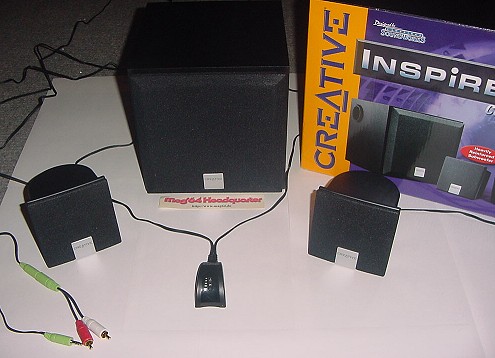 | Das Thema Soundsysteme beschäftigt uns glücklicherweise nun öfters. Denn mit der Firma Creativ, vielen als Soundkarten Spezialist bekannt, steigt nun die dritte Firma in den Markt dieser Zubehörartikel ein. Neben verschiedenen Inspire Versionen für jeden Geldbeutel gibt es mit der Version Console 2400 auch eine spezielle Variante für den Gamecube, was durch einen Aufkleber auch kenntlich gemacht wird. Im typischen Creative Design erwartet einen auch hier erstmal ein Kampf mit den Verpackungen. Fast schon Bombensicher sind die Inhalte verpackt. Wie die Konkurrenz auch bietet Creative im Paket einen Subwoofer, sowie 2 Satelliten Boxen. Dazu das Netzteil, als auch die üblichen Kabelverbindungen und Adapterstecker. Ebenfalls im Lieferumfang ist erneut eine Fernbedienung, die aber ebenfalls über eine Kabelverbindung angeschlossen wird. Vom Design her hält man es im Hause Creativ eher konservativ. Kleine unauffällige Satelliten und eine Würfelförmige Subwoofer Einheit. | ![]()