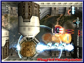 Nun besitzt man die Möglichkeit per A-Taste die Polarität des Kampfflugzeuges umzuschalten. Einfach gesagt sind es einmal weiße Geschosse und einmal schwarze. Die gesamte Gegnerschaft ist trotz verschiedener Designs in genau diese beiden Farben eingeteilt. Nun könnt Ihr durch die Polarität immens Punkte gutmachen und eine sogenannte Chain Combo auslösen. Links oben im Screen kann man sich per Z-Taste die Combo einblenden lassen. Das heißt z.b. schießt Ihr weiße Geschosse und trefft hintereinander Gegner dieser Polarität so steigt bei jedem gleichfarbigen Gegner die Combo und damit die Punktzahl. Ein Abschuß innerhalb der Combo eines andersfarbigen Gegners setzt diese Anzeige wieder auf Null. Das kann innerhalb von kurzen Abschnitten über hunderttausende Punkte entscheiden. Im Spiel selber sorgt dies für ein hektisches Gameplay. Durch die Vielzahl der Gegner und das Wollen des Spielers so perfekt wie möglich zu spielen macht man zu Beginn mehr Fehler als man möchte. Hintereinander weg erscheinen Gegner und der Bildschirm ist nur äußerst selten ruhig. Objekte wohin das Auge reicht sorgen hier für Anspannung pur. Dazu ein Schwierigkeitsgrad der sich gewaschen hat. Denn wer sich mit der Steuerung angefreundet hat darf im Game Start das ganze nun auch im Hauptspiel testen. Hat man seinen Schwierigkeitsgrad eingestellt, die sich sehr voneinander unterscheiden kann man wählen zwischen einem Trial Mode und dem Chapter Mode. Der Trial Mode stellt besondere Vorbedingungen und bietet auch nur 2 Chapter. Der reine Chapter Mode ist eigentlich der Kern des Spiels. Spielt man diesen liegen insgesamt 5 Chapter mit knapp 20 Stages vor dem Spieler. Dabei spielt man diese in einem Ruck durch. Zwischendrin speichern ist nicht. Je nach Einstellung beginnt Ihr mit 5 Flugzeugen und 4 Continues und müßt nun versuchen so weit wie möglich zu kommen. Dabei wartet am Ende jeder Stage eine Endgegner die den Namen auch verdienen. Selbst auf Easy ist Chapter 5 zunächst mal eine Utopie und man ist froh die ersten überhaupt zu schaffen. Ikaruga ist ein typsiches Spiel bei dem man mit jedem Versuch immer besser wird. Was daran liegt das die Abfolgen der Gegner immer gleich sind. So stellt man sich mit der Zeit drauf ein und erzielt vor allem in Sachen Scores immer bessere Ergebnisse. Man ärgert sich über jedes dumm verlorene Leben und versucht sich immer wieder am Thema Perfektionismus. Ein Spiel dieser Art hatten wir lange nicht. Für Score Fans und Shooter Liebhaber dieser Art ist Ikaruga schon mehr als ein Geheimtipp. Positiv das man erreichte Stages später auch im Conquest Modus anwählen kann und so ein wenig üben kann. Vor allem da man hintere Stages sofort anwählen kann. Grafisch bietet Ikaruga aufgrund des Spielprinzip geniale Effekte.