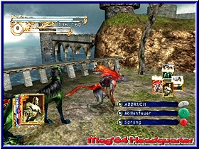 Ein kleiner Magiestein gibt Euch einen Magiepunkt zurück, ein Mittlerer drei, der Große hingegen füllt ganze fünf Punkte Eurer Magieanzeige auf. Ist diese Anzeige bereits gefüllt, erhaltet Ihr für jeden überschüssigen Magiepunkt Goldstücke mit denen sich Tara im Kartenladen wertvolle, sehr effektive Karten kaufen darf. Unbestreitbar wichtige Karten sind zum Beispiel "Fangkarten". Habt Ihr eine solche in Eurem Besitz, solltet Ihr Eure Gegner zuerst mit normalen Kartenattacken schwächen, um sie dann mit einer "Fangkarte" zu bannen und sie so in Eurem Fundus aufzunehmen. Seid Ihr allerdings nicht sonderlich erfolgreich, kommt es schon hin und wieder vor, dass Euch eine bösartig gesinnte Kreatur besondere temporäre Schäden zufügt. Tara kann unter anderem vergiftet werden, ein Fluch legt sich über sie, ebenso kann unsere Protagonistin in einen tiefen Schlaf fallen oder - besonders kritisch - versteinert werden. Um feindlichen Attacken möglichst unbeschadet zu entkommen, haben die Entwickler von FromSoftware eine weitere Neuerung in's Spiel integriert, die so genannten "Kombos", die sich aus unterschiedlichen Kartenkonstellationen zusammensetzen. Etwa ist es durch Kombination eines "Karfunkel", des "Juggernaut" und des "Peitschenwurms" möglich, einen "Fatalen Orbit" zu beschwören, eine Art Ring, bestehend aus drei Kreaturen, die Tara umkreisen und so vor feindlichen Attacken schützen. Die Kreaturenanzahl in "Lost Kingdoms 2" ist ebenfalls um einiges komplexer als dass das noch im Vorgänger der Fall war. Neben giftigen Skorpionen werden die Levels von hässlichen Hau-Drauf-Echsen und kriegerischen Kampfelefanten bevölkert. Grauenhafte Wolfshunde attackieren Euch ebenso wie anmutige Drachenwesen, die ebenso in den Landschaften von "Lost Kingdoms 2" vertreten sind. Grafisch wurde das Spiel gegenüber dem Vorgänger ebenfalls aufpoliert, so erstrahlen die Charaktertexturen in einem besseren Licht, die Animationen können sich auch sehen lassen. Die Landschaft an sich ist in meinen Augen dagegen weniger gut gelungen. Zwar sind die Gebiete unterschiedlichster Art (idyllische Wälder, weitläufige Grasflächen, Wüstengebiete), mir persönlich jedoch zu eintönig gestaltet. Zwar können - wie schon im Vorgänger - die effektvollen Kampfeffekte gefallen, in heutiger Zeit hat man dennoch schon Schöneres gesehen. Zum Thema Sound muss "Lost Kingdoms 2" in meinen Augen jedoch gehörig Minuspunkte einstecken. Viele Musikstücke wollen auf Gedeih und Verderb einfach nicht richtig in's Ohr, teilweise finde ich die musische Untermalung nahezu unpassend. Nichtsdestotrotz kann die professionelle Sprachausgabe ein paar Bonuspunkte gut machen, besser als der Vorgänger ist die "Musik/Soundeffekte"-Bewertung aber mit Sicherheit nicht.