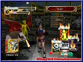 Ein anderes Mal heißt es einen unüberwindbaren Vorsprung zu erreichen, der ohne Karteneinsatz niemals möglich gewesen wäre. Verwandelt sich Tara dagegen in einen "Höllenhund", verfügt sie über ungeahnt große Kräfte, so dass der Vorsprung kein Problem mehr darstellt. Derartige Abhängigkeiten findet man im Spiel zuhauf, ein Lob geht an die Entwickler, da der Einsatz der Karten nun nicht mehr lediglich im Kampf, sondern auch im Voranschreiten innerhalb der Levels vonnöten ist. Um sein Deck, das maximal aus 30 Karten bestehen darf, im Spiel einzusetzen, benötigt man für jede Karte eine gewisse Anzahl an Magiepunkten, um sie zu aktivieren. Ist man jedoch im Zugzwang und mitten im Kampfgetümmel, wird ebenso die Lebensenergie in Anspruch genommen; jedoch erst dann, wenn Tara's Magieleiste dem Ende entgegen geht. Wie schon im Vorgänger sammelt man durch fleißigen Einsatz seiner Karten Erfahrungspunkte, die zum einen Tara in höhere Stufen befördern, zum anderen aber auch die Möglichkeit geben, die eigenen Karten zu verbessern. Dazu müsst Ihr in den Kartenladen von Kadishu, in dem Ihr Karten kaufen respektive verkaufen dürft, einzelne Karten kopieren oder wie oben schon erwähnt, aufwerten könnt. Beispielsweise wird aus einer "Roten Echse" mit der Zeit ein "Echsenmann", später eine "Giftechse", dann ein "Basilisk" bis er schließlich zum Hünen unter den Echsen, dem "Dragonoid" empor steigt. Verbunden ist das alles mit den Erfahrungspunkten, die Ihr mit einer der Karten bereits gesammelt habt. Umso mehr Punkte Eure Karten aufweisen, umso leichter lassen sich diese in die folgenden Entwicklungsstufen transformieren. Zugleich könnt Ihr neue Karten auch innerhalb der aktuellen Aufträge finden. Zum einen sind diese in Kisten versteckt, zum anderen wird jede Region am Ende einer Mission nach Eurem Erfolg bewertet. Dementsprechend erhaltet Ihr bis zu drei zusätzliche Karten, die Ihr problemlos in Eure Decks (bis zu acht) integrieren dürft. Innerhalb der Levels stößt Tara von Zeit zu Zeit auf "Deckpunkte", die Euch die Möglichkeit bieten, bereits verbrauchte Karten durch neue zu ersetzen. In hitzigen Gefechten sind derartige Stellen unerlässlich und eine Bereicherung für groß angelegte Schlachten. Ebenso notwendig sind rote beziehungsweise blaue Feen, die in der Gegend herumschwirren und bedeutungsvolle Fähigkeiten aufweisen. Rote Feen sind besonders gern gesehen bei Jarvi, einem Feenkundler, der Euch im Tausch besonders wertvolle Magiekarten aushändigt. Blaue Feen hingegen schenken Euch wertvolle Lebensenergie, geben Euch Magiepunkte zurück oder reaktivieren bereits eingesetzte Karten auf's Neue. Seid Ihr gerade in einen Kampf mit einer gegnerischen Kreatur verwickelt, hinterlassen diese auch oftmals Magiesteine, die in der Größe variieren. |