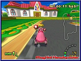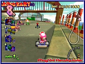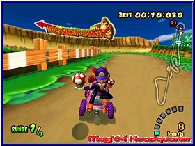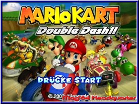 Das Warten hat endlich ein Ende. Man Gott ist viel Zeit vergangen seit Mario Kart 64 und seinem endlich erhältlichen Nachfolger. Wenn ich daran denke das Mario Kart 64 einer der ersten Tests damals im Mag'64 war, ist dies eine recht beträchtliche Zeitspanne. Eigentlich ist Mario Kart ein Spiel das man kaum testen braucht. Ich denke 99% aller Gamer die einen GCN besitzen werden das Spiel wohl über kurz oder lang eh blind kaufen. Es gibt sicherlich wenige Spiele wo man blind zuschlagen kann. Mario Kart ist aber eines davon. Nicht umsonst trägt er eigentlich immer noch die Multiplayer Krone, schaut man sich die Entwicklung über Jahre an. Zumindest sorgte er auch bei uns immer mal wieder dafür das dass gute alte N64 zu einem Einsatz kam. Denn seit dem SNES ist der Multiplayer eigentlich das Zugpferd. Der Single Player war nie das was einen Monate an die Konsole fesselte und viele Spiele wie damals ein Diddy Kong Racing boten da mehr. Trotzdem, sobald mehrere Leute zusammensaßen flog DKR aus der Konsole und Mario Kart war On Air. So war meine Erwartungshaltung auch hier viel intensiver was den Multiplayer angeht, wobei der Singleplayer natürlich nicht minder wichtig ist. Aber die Prioritäten sind einfach etwas anders abgesteckt als bei anderen Games. Dazu kommt ein weiteres Feature das mit Mario Kart Double Dash Einzug hält. Endlich möchte man meinen. Denn wenn schon keinen Online Modus, der wohl sicherlich das Mag'64 erstmal lahmgelegt hätte, so dürfen sich Nintendo Spieler endlich über den LAN Modus freuen und bis zu 8 GCN Konsolen miteinander verbinden. Was das bringt, wie das ganze funktioniert und ob es Spaß macht zeigen wir euch wie damals beim Beginn der Online Zeiten in einem Special, das Ihr am Ende des Tests finden könnt. Doch zunächst widmen wir uns dem Spiel an sich und was uns Nintendo in Sachen Spielspaß und Inhalt so bietet. Kaum eingeschaltet darf der Spieler den 60Hz Modus anwählen, wobei alles andere auch überrascht hätte. Auch in Sachen Memory Card ist das Spiel vorbildlich und belegt mit 3 Seiten recht wenig des kostbaren Speichers. Danach startet das Spiel mit dem gewohnten Nintendo Schrei in einer mal wieder etwas anderen Variante und der Vorspann läuft am Auge des Betrachters vorbei. Wer noch nicht viel an Vorberichten kannte wird sicherlich einiges überraschendes festgestellt haben. Aber zumindest zeigt der Vorspann klar worum es geht. Action der etwas anderen Art mit den Helden aus der Nintendo Welt. Hat man sich dann doch mal sattgesehen beginnt das Spiel mit dem obligatorischen Hauptmenu, das neben dem Spielstart die Rekorde Abteilung bietet sowie die Optionen und den schon angesprochenen LAN Modus.