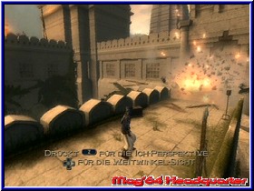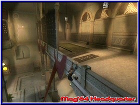 Teilweise bescheren Euch diese Vorgänge wertvolle Sekunden oder erlauben es Euch einen besseren Überblick über das Spielgeschehen zu erhalten (ebenso: "Macht der Beschleunigung"). Häufig habe ich diese Elemente jedoch nicht verwendet, geschickte Angriffstaktiken reichen in "Prince of Persia - The Sands of Time" allemal. Hübsch anzusehen und einesteils ganz nützlich ist das Einfrieren Eurer Gegner, welche für Sekunden sozusagen "ausgeknockt" sind und ihr sie demnach mühelos bearbeiten könnt. Finaler Endschlag ist das Zerteilen des Gegners - Blut findet Ihr bei dem aktuellsten Prinzen-Ableger aber zu keinem Zeitpunkt im Spiel. Weil sich insbesondere die Kampfeinlagen als ziemlich Energie-raubend herausstellen, findet Ihr im Spiel oftmals diverse Springbrunnen sowie Wasserbecken vor. Ein paar Schlücke genügen und die Lebensenergieanzeige des Hauptcharakters ist bis zum Anschlag gefüllt. Magische Springbrunnen hingegen erweitern Eure Leiste dauerhaft, sind aber nicht zwingend notwendig, eingesammelt zu werden. Die Entwickler von Ubi Soft entschlossen sich, dem Spiel eine reine Levelstruktur zu verwehren, vielmehr besteht der Titel aus einem einzigen Guss, der so gut wie nie von lästigen Ladezeiten unterbrochen wird. Häufige Zwischensequenzen übernehmen diesen Part und ersparen dem Spieler nervtötende Langeweile in Form von "Wann-geht-es-endlich-weiter?!"-Zeiten. Negativbeispiel ist hier "True Crime: Streets of LA", welches dem Spielvergnügen auf Grund seiner Ladezeiten einen guten Teil nimmt. Speicherpunkte findet man im Spiel des häufigeren, meist erscheinen diese nach ausladenden Massenschlachten gegen ehemalige Bedienstete als gut erkennbare, leuchtende Sandhosen. Dort könnt Ihr Euch so genannte "Visionen" verinnerlichen, welche einen Ausblick auf den folgenden Abschnitt im Spiel preisgeben. Wichtige Spielstellen sowie unumgängliche Aktionen werden dort als kurzer Filmschnipsel gezeigt. Derartige Blicke in die Zukunft ersparen Euch manchmal nerviges Herumprobieren; wie Ihr die meisten Abschnitte erfolgreich löst, sollte somit ersichtlich werden. Dennoch kann man dem Spiel einen hohen Schwierigkeitsgrad nicht absprechen, vor allem liegt das aber an den Schlachten gegen eine große Anzahl an Gegnern (Skarabäen, Riesenvögel, Muskel-strotzende Hau-Draufs…), jedoch seid Ihr mit der Sprung- und Mauer-Abprall-Attacke aber auf der richtigen Seite und gebt den Gegnerscharen Saures. Segnet Euch dennoch einmal das Zeitliche, gestattet Euch das Spiel die Rückkehr an gut platzierten Stellen im Spiel (nicht nur Speicherpunkte). Unfair fühlt man sich bei Ubi Softs Titel aber nie behandelt. Gegen Ende des Abenteuers gibt es zwar einige Geschicklichkeitsabschnitte mit Film-reifen Sprungeinlagen, die Ihr nur mit viel Glück gleich beim ersten Mal schaffen dürftet, jeder Bildschirmtod motiviert Euch aber umso mehr, den Abschnitt ein weiteres Mal anzugehen.