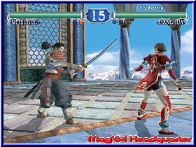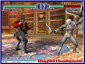 Dies alles mit den jeweiligen Bonus Varianten und der freien Waffenwahl sorgt für höchsten Spielgenuß. Großen Anteil an diesem Spaß hat die technische Präsentation. Nicht nur das die Steuerung wunderbar umgesetzt ist, der Gamespeed sehr hoch und vor allem die Animationen der einzelnen Kämpfer stilistisch hervorragend gelungen sind, auch die Grafik spielt hier eine Rolle. Allein die animierten Kämpfer mit wehenden Haaren oder Kleidungsstücken oder die Effekte der Moves. Farbenpracht und eine Hohe Auflösung die einfach nur geil aussieht. Hier hat man uns Spielern also vor dem Release nicht mit manipulierten HiRes Screens den Mund nur wässrig gemacht. Das Spiel sieht wirklich so aus, was der Atmosphäre natürlich mehr als gut tut. Ein echtes Highlight selbst in Sachen Grafik und Animation spielt man ebenfalls mit der Zeit frei. Jetzt kommt auch der letzte Punkt auf dem Hauptmenu zu seinem Recht - das Museum. Hier findet Ihr neben Artwork und Bilder Gallerien sämtliche Waffen, Biographien zu jedem Charakter und den Punkt Waffendemonstration. Nichts anderes als selbstlaufende Kampfsequenzen eures Helden mit jeder enhaltenen Waffe. Das sieht obergenial aus. Keine störenden Screeneinblendungen, sondern nur Grafik und Animationspower pur. Ein echter Genuß und Highlight im Spiel. Wer noch einen Freund um sich scharen kann, der spielerisch ähnlich veranlagt ist wird sich über Langeweile nicht beklagen. Neben dem Duell ist auch der Arcade Modus zu zweit spielbar und die Suche nach dem heimlichen Chef im Ring bietet stundenlangen Spielspaß ohne das es eintönig wird. Es paßt einfach alles in diesem Spiel. Mir fällt eigentlich beim besten Willen kein offensichtlicher Negativpunkt ein, der wirklich auch einer währe. Und auf Krampf suchen werde ich hier nicht. Selbst Ladezeiten sind eigentlich kaum vorhanden. Vielleicht einzig der Rumbler der mäßig angesprochen wird. Aber dann doch irgendwie auch nichts was einen Prügelfan von diesem Spiel fernhalten dürfte. Soul Calibur II ist nicht nur eine uneingeschränkte Empfehlung für Prügelfans sondern wohl ein Spiel an dem alle folgenden Konkurrenten mächtig zu knabbern haben werden. Was Namco hier den Spielern vorsetzt und vor allem an Technik und Tiefgang bietet verdient großes Lob. Wollen hoffen das der kommerzielle Erfolg einen Nachfolger möglich macht. Also Prügelfans. Ab zum Händler. ;-)