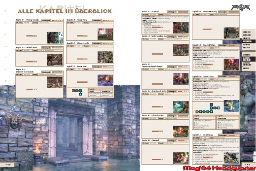 Fans des Waffenmeister Modus kommen im Lösungsbuch ebenfalls nicht zu kurz. Man beschreibt neben allen einzelnen Kapiteln auch sämtliche Bonus und Unterkapitel. Ihr bekommt Karten wo es sich anbietet, die Arten der Belohnung und Hinweise wer und was auf euch dort wartet. Dazu in welchem Kapitel die einzelnen Waffen zu kaufen sind und was diese kosten. Gleichlaufend gibt es die Informationen wie sie sich auf die Eigenschaften des Charakters auswirken. Wer sich nicht überraschen lassen will was er wo im Spiel freischaltet findet auch zu den Secrets in Soul Calibur II eine Extra Rubrik im Lösungbuch. Die Stärke des Buches ist wie schon bei der Zelda Variante die Ausführlichkeit der einzelnen Kapitel. Nichts wird weggelassen oder stiefmütterlich behandelt. Das edle Design und Layout samt der wieder sehr guten Papier Qualität machen aus dem Buch eine lohnenswerte Anschaffung. Natürlich schafft man das Spiel auch ohne ein Lösungsbuch. Wer Soul Calibur II aber zu seiner "Religion" erklärt kommt um dieses Buch nicht herum. Inhaltlich wieder ein qualitativ hochwertiges Produkt das man uneingeschränkt empfehlen kann.