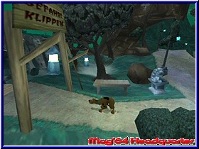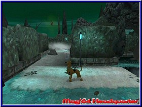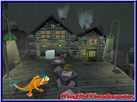 Das Spiel selber ist eine Mischung aus Rätseln und einem normalen Jump'n Run, wobei der Geschicklichkeitspart weitaus stärker vertreten ist. Scooby muß nun insgesamt 12 Locations durchforsten, die in viele kleine Unterabschnitte aufgeteilt sind. Er beginnt am Herrenhaus und muß sich alle Locations zum einen erst verdienen oder sie überhaupt erstmal finden. Über ein Pausenmenu kann der Spieler später im Spiel immer seinen aktuellen Platz wiederfinden und schauen wo er sich gerade befindet. Gesteuert wird Scooby mit dem Stick oder dem Steuerkreuz. Per B-Taste kann er seine Beschleunigungsattacke ausführen, die wie alle diese Aktionen genau die gleichen Geräuschsamples besitzen wie die Trickfilme. Etwas das mir ebenfalls sehr gefallen hat. Dazu kommt per A-Taste ein Sprung und bei gedrückter R-Taste kann Scooby etwas schneller laufen. Sehr schöne Animationen des Helden erfreuen dabei bei den einzelnen Aktionen das Auge. Desweiteren könnt Ihr mit der X Taste mit Personen reden oder im Boden an bestimmten Stellen graben. Per Y-Taste werden die Bildschirmanzeigen eingeblendet. Und schon kommen wir zu einem weiteren Feature im Spiel. Scooby kann und muß über das gesamte Spiel seine Lieblingskekse einsammeln. Diese Scooby Schmeckis dienen aber nicht für die Lebensenergie sondern kann man im übertragenen Sinne als Geld ansehen. Immer wieder im Spiel trifft Scooby auf Locations die von einem Tor verperrt sind. Erst wenn er die geforderte Anzahl an Schmeckis eingesammelt hat bekommt er Zugang. Da tausende davon im Spiel, wie in anderen Spielen Münzen verstreut sind und die auch braucht sollte man diese nicht unterschätzen. Links oben im Screen ist die Lebensanzeige. Oder besser Energieanzeige. Denn Leben in dem Sinne gibt es nicht. 5 sogenannte Muteinheiten könnt Ihr maximal besitzen. Bei einem Treffer durch einen Gegner oder ein Objekt verschwindet eines davon. Auffüllen kann man sie durch bestimmte eßbare Items, die man unterwegs an allen Ecken und Enden findet. Erst wenn alle 5 verloren sind beginnt man das aktuelle Level vom Anfang. Was zu Beginn ungewohnt ist, das dürfte die feste Kamera sein. Der Spieler selber kann die Kamera nicht verstellen oder anpassen. Ihr seid also auf Gedeih und Verderb dem guten Willen der Kamera ausgeliefert. Da das Spiel in 3D gehalten ist schaltet es je nach Viewpoint um. In freien Arenen also hinter Scooby, während in 2D ähnlichen Umgebungen der Held von der Seite gezeigt wird. Ist dabei eine Wand im Weg wird diese transparent. Zu 90% kommt man damit klar und es gibt wenig zu meckern was die Kamera angeht. |