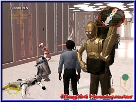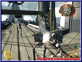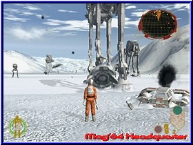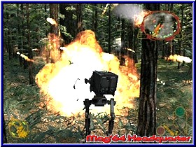 Das vielleicht beste am Spiel ist für mich aber nicht der Einzelspieler Modus, sondern der Menupunkt Kooperation. Denn hier findet der Rebel Strike Käufer nichts geringes als den Vorgänger Rogue Leader komplett mit allen Missionen für 2 Spieler. Einziger unterschied zum Vorgänger ist das Ihr hier das gesamte Spiel im Splitscreen zu zweit spielen könnt. Inklusive einer Speichermöglichkeit und mit allen Medaillen und Bonusmissionen. Was zeigt das die kleine MD des GCN mehr als gedacht speichern kann. Wer den Vorgänger nicht kennt oder einen Multiplayer vermißt hat kann hier loslegen. Nach dem Anspielen wird man auch technisch nicht enttäuscht. Steuerung, Grafik und Speed bringen fast keine Unterschiede zum Singleplayer zu tage. Sehr beeinduckend! Doch kommen wir zunächst zum reinen Einzelspieler Modus in Rebel Strike. Wird ja sicher auch den einen oder anderen interessieren. ;-) Wie im Vorgänger auch startet dieser Modus mit dem Mission Screen, in dem Ihr wie gewohnt die verfügbaren Missionen anwählt und spielen könnt. Hier wählt Ihr je nach Fortschritt im Spiel euer gewünschtes Level aus. Auch hier wird wieder in einem Fenster ein Live Blick in das Level gezeigt, der euch grob zeigt was abgeht. Das Spiel bietet euch 15 Kern Missionen plus das Trainings Level. Dazu kommen zumindest nach meinem Spielstand 4 Bonus Missionen, was im gesamten mehr Inhalte ausmacht als im Vorgänger. Die erste wählbare Mission ist auch hier wieder das umfangreiche Trainingslevel, in dem euch neben der Steuerung auch alle anderen Features näher gebracht werden. Ihr steuert hier einen Skyhopper und könnt euch mit der Steuerung vertraut machen. Was die reine Steuerung angeht werden Rogue Leader II Spieler sofort warm, da sich praktisch nichts geändert hat. Alle Vehicle im Spiel werden was die Richtung angeht mit dem 3D-Stick gesteuert. Mit der L-Taste könnt Ihr Bremsen, mit der R-Taste Gas geben. Allerdings nicht unendlich, sondern nach Vehicle unterschiedlich. Mit der Z-Taste könnt Ihr im Flug eine Rolle ausführen, sowie mit der Y-Taste den sogenannten Targeting Computer aktivieren. Mit der X-Taste könnt Ihr auf die Cockpit Ansicht wechseln. Diese in allen Vehiclen sehr detaillierte Sichtweise bietet euch die Möglichkeit im Flug nach allen Richtungen zu schauen. Nutzt man zwar kaum, aber technisch hervorragend gelöst. Vor allem später in den All Leveln wirkt das extrem gut. Weggefallen ist die Möglichkeit von Haus aus mehrere Viewpoints zu wählen. Entweder Ihr steuert mit der vorgegebenen Außenansicht hinter eurem Vehicle oder eben per Cockpitansicht. Mit der A-Taste wird die Primärwaffe, meist ein Laser benutzt, während man mit der B-Waffe die Sekundärwaffe benutzt. Hier zeigt sich ein unterschiedliches Bild von Wing zu Wing, wobei man beiden Waffen Arten durch die erneut abartig versteckten Tech Upgrades teilweise immens aufrüsten kann. |