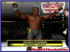 Aber grafisch wie von der Atmosphäre her wunderschön gemacht. So sollte es sein. Der Turnier Modus ist auch der Teil im Spiel in dem Ihr bis zu 8 Spieler vor dem Fernseher versammeln könnt. In Viertel, Halb und Finale wird das Turnier ausgegkämpft, wobei immer 2 abwechselnd kämpfen. Im Exhibition Mode geht das ganze auch normal zu zweit wie man es von einem 2P Modus kennt. Absolutes Highlight ist der Career Modus, der es mir persönlich angetan hat. Hier findet man parallelen zu Smash Melee. Zunächst erstellt Ihr euch einen eigenen Prügel. Austatten könnt Ihr ihn mit Namen, Stimme, Hintergrundinfos und natürlich dem Aussehen. Seit Harlem Heat in guten alten WCW Zeiten steht das Mag'64 auf schwarze Kämpfer. So erblickte der Mag'64 Punisher das Licht der Welt und sollte fortan die Liga aufmischen. ;-) Denn einmal erstellt werden euch auf dem Übersichtsscreen die Eigenschaften in Form von Balkenanzeigen dargestellt. Anfänglich gen Null tendierend müßt Ihr diese Werte Balken für Balken aufstocken. Dazu stehen euch 30 Kämpfer gegenüber, die man wie in Smash Melee beim Contest nacheinander anwählen kann. Gewinnt man so einen Kampf bekommt man je nach Levelstärke des Gegners Punkte, die man nun verteilt. So baut man nach und nach den eigenen Recken auf und hat Schlußendlich eine fette Kampfmaschine zur Verfügung. Das ganze kann man auf der Memcard sichern und auch zu Freunden mitnehmen, da man in allen Modis von Memcard Platz A oder B auch einen Kämpfer laden kann. 8 Recken sind auf eine Memcard speicherbar. Sollte also reichen. Weiterhin steigt der eigene Kämpfer auch im reinen Level, was bei bestimmten Levelgrenzen neue Moves zu Tage fördert, die er anfänglich nicht kann. Ebenfalls etwas das mit persönlich gefallen hat. Auch zu sehen wie sich der eigenen Kämpfer von Kampf zu Kampf entwickelt hat einfach was. Anfangs siegt man immer äußerst knapp bei den Gegnern, welche ungefähr der jeweiligen Stärke des eigenen Recken inne haben und merkt nach und nach das man die richtigen Werte gepusht hat. Schade das bei 30 Kämpfen Schluß ist. Kurioserweise steht im Handbuch etwas von 40 Kämpfen. Selbst auf Hard ist bei 30 Schluß. Das der eigene aufgepowerte Kämpfer auch wirklich das kann was man von ihm erwartet kann man in den Modis auch nachschauen. Mein Kämpfer gehört zur Heavy Weight Riege. Eigene Kämpfer kann man per Memcard aber auch in die Fliegen Gewichts Klasse laden und sieht sich 3 Schläge des eigenen Mann's an und der Gegner liegt winselnd am Boden. Da kennt er keine Gnade. ;-) Unbesiegbar ist er deswegen aber nicht, aber macht irgendwie mehr Spaß als mit den vorgegebene Recken. Auch er kann die Medaillen einheimsen und bekommt sie in seiner Anzeige verewigt.