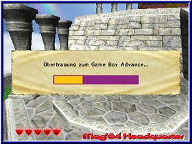 Zunächst schließt man den GBA an den 2. Port an. Danach gilt es auf dem GCN erstmal etwas Vorarbeit zu verrichten. Denn um die GBA Inhalte erspielen und nutzen zu können muß der Spieler auch etwas tun. In Wario World sind dies die Schatzkisten. Pro Level gibt es 8 davon die man ausnahmslos alle finden muß. Hat man in einem Level alle 8 gefunden geht man in der Hauptwelt von Wario World zur großen Schatzkiste. Links und rechts davor sind Fragezeichen Symbole zu sehen. Hat man also alle 8 Schatzkisten in einem Level geholt verwandelt sich dieses in eines der GBA Symbole. Ist der GBA eingeschaltet schlägt man mit Wario an dieses Item und der Upload auf den GBA beginnt und wird per Status Anzeige dargestellt. Ist dies komplett begrüßt euch der Startbildschirm von Wario Ware mini! Jetzt kann man das Kabel abziehen und am GBA zocken was der Akku hergibt. Das schöne dabei das aus den 200 im GBA Original enthaltenen Spielen nicht nur 8 ausgewählt wurden. Im Endeffekt bekommt Ihr von jedem Charakter der GBA Version gleich mehrere Minispiele zur Verfügung gestellt. Mit jedem neu erspielten Symbol auf dem GCN erweitert Ihr so die Auswahl. Die Symbole bleiben dauerhaft aktiv, so das Ihr jederzeit spielen könnt. Für einen schnellen Zeitvertreib genau das richtige. Wer sich ein Auge holen will wie die GBA Version von Wario Ware Inc. aussieht bekommt hier ein billige Möglichkeit. Etwas das man so ruhig öfters machen kann. Beispiellevel als Demos über eine GCN Disk. Sehr gut Nintendo! | ![]()