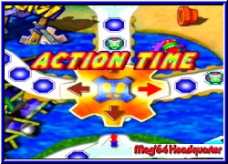 Diese findet man im gelben Stern auf dem Hauptbildschirm. Dort kann man ihn besuchen und zunächst immer Kontrollieren wieviele Minispiele man überhaupt hat. Jeder Art ist dabei als Bücherreiche zu sehen und man kann sie hier alle anspielen. Ein kaufen der Spiele wie früher ist nicht mehr enthalten. Überhaupt wandern erspielte Sterne nicht mehr in einen Topf. Nur die Münzen werden intern mitgezählt, da man nur so z.b. eines der geheimen Minispiele freispielt die im Brett Modus ganricht erscheinen. Ich habe jetzt 66 von 70. Auf jeden Fall alle Spiele die man für den Brettspiel Modus braucht. Die letzten 4 kann ich mir denken, allerdings liegt dafür viel Zeit vor dem Spieler. Die Bretter selber sind von der Größe her umfangreicher als die Vorgänger und vor allem mit mehr Fallstricken ausgestattet. Verschlossene Wege sind mehr vorhanden und allerlei Überraschungen in Form der Fragzeichenfelder. So läuft z.b. in einem Kreis bei jedem Betreten eine Anzeige von 5 nach unten. Ist diese bei 0, so werden allen Spielern die innerhalb dieser Kreises stehen alle Münzen abgezogen. Da man hier immer wieder vorbei muß ein ernstzunehmender Ort. :-) Grafisch gibt es eigentlich nichts besonderes neues. Auch keine Weiterentwicklung der Renderhintergründe. Was aber auch nicht schlimm ist da hier das Hauptaugenmerk auf anderen Dingen liegt. Und die zeigen sich von ihrer besten Seite. Denn wer einmal genug hat vom Brettspiel Modus geht auf dem Hauptbildschirm nach rechts zum 2P Battle Modus. Hier spielen immer nur 2 Spieler gegeneinander, egal ob menschlich gegen Computer oder 2 Freunde. Das Spielprinzip ist hier total anders, da Sterne z.b. überhaupt keine Rolle spielen. Auch hier begrüßt euch Coro wie gewohnt und Ihr stellt Spieler, Länge und Brett ein. Hier gibt es nun 5 komplett neue Bretter, die aber wesentlich kleiner sind als die Party Bretter. Was aber auch gewollt ist. Zu beginn erwartet euch wieder der Millenium Star der entscheidet wer auf dem Brett beginnt. Jeder Charakter bekommt fest zugewiesen einen Co-Charakter zu beginn. Dieser läuft dann auf dem Brett vor oder hinter dem Spieler. Bei Mario ist es z.b. der Koopa, der nun immer vor ihm läuft. Jeder dieser Co-Charaktere besitzt 2 Eigenschaften. Einmal für Angriff und Verteidigung. Ziel auf dem Brett ist es immer den Gegner auszuknocken. Jeder Spieler verfügt hier über eine Lebensanzeige in Form von 5 Herzen. Verloren hat der der alle verloren hat oder nach Ablauf der eingestellten Runden die wenigsten hat. Beide beginnen entgegengesetzt auf dem Brett und würfeln nach alter Art. Steht jetzt z.b. Mario mit Koopa vor sich 1 Feld vom Gegner entfernt der seinen Co-Charakter ebenfalls vorne hat und würfelt eine 2 so beginnt die sogenannte Action Time.