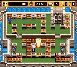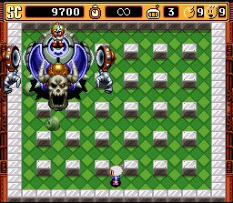 einiges mehr. In jeder Welt trifft Bomberman nach sieben Leveln auf den jeweiligen Boss: im Schloß Magnet Bomber, in der Feuergrube Fire Bomber, im Zuckerschloss Pretty Bomber, in der Stadt der Zukunft Brain Bomber und in der Basis Plasma Bomber. Diese müssen jeweils in ihrer normalen Form dreimal angebombt werden, bis sie einen Roboter herbeirufen, der wesentlich mehr einstecken kann. Dazu besitzt jeder noch einige Eigenarten (Magnet Bomber wirft z.B. Bomben, die sich magnetisch an Bomberman heranziehen).