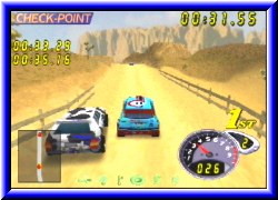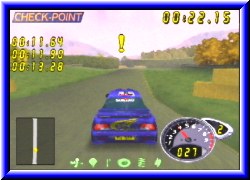 | Wählt man diesen Modus an gelangt man zum Meisterschafts Screen . Hier sind ebenfalls einige Menupunkte zu finden. Neben dem Starten der WM Rennen kann man eine Rally Schule besuchen, das Fahrer oder Team Menu anwählen, den Werkstatt Wagen besuchen sowie in den Options verschiedene Dinge einstellen. Dort findet man auch die Speichern/Laden Option um ein Spiel auf Memory Card zu sichern. Dort stehen dann 3 Speicherplätze zur Verfügung. Ziel im Spiel ist es von ganz unten eine Art Rally Karriere zu starten. Dafür muß man zahlreiche Rennen und Cup's bestreiten. Wie in einer richtigen WM geht es natürlich um das erreichen von Punkten. Hier die sogenannten Championchip Punkte. Verschieden Cup's sind später auch nur mit einer bestimmten Punktzahl anwählbar. Um sich allerdings mit der Steuerung und dem ganzen drum herum anzufreunden bietet sich die Rally Fahrschule an. Schon allein diese Prüfungen können Stunden dauern. Denn auch hier ist alles nochmals in verschiedene Hauptprüfungen eingeteilt, die immer mehr an Schwierigkeit zunehmen. Wählt man eine Prüfung an muß man jetzt mehrere Zwischenprüfungen bestehen. Vor jeder Prüfung wird einem dabei kenntlich gemacht worum es geht und was das Ziel der Prüfung ist. Das geht vom einfachen Driften bis hin zu Nachtfahrten unter erschwerten Bedingungen. Ebenso muß man dabei zusätzlich noch eine Zeitgrenze einhalten. Danach bekommt man schon hier Pokale und Championchip Punkte. Das Auto für die Prüfungen wird dabei immer vorgegeben. Was zu beginn aber auch von Nachteil sein kann, da man die unterschiedlichsten Gefährte bewegt und sich alle aufgrund ihrer Power anders steuern. Hat man aber z.b. die ersten Prüfungen hinter sich gebracht kann man auch die reine WM beginnen. Hierzu geht man zunächst in das Team Menu um den ersten Wagen zu wählen. Zu Beginn steht euch ein Team samt Fahrzeug zur Verfügung. Weitere Teams müßt Ihr immer erst erfahren. In etwa so wie bei WDC, wo eure Leistungen zu besseren Gefährten führen. Nachdem man das erste Team gewählt hat kann man sich hier die technischen Daten seines Gefährtes anschauen, die nach Leistung, Handling und Top Speed eingeteilt sind. Desweiteren wird euch hier angezeigt wieviele Pokale und vor allem Sponsoren Ihr schon habt. Denn Sponsoren und damit Geld spielen hier eine enorme Rolle. Denn wählt man einen frischen Wagen ist dieser in einer Farbe lackiert. Als erstes bekommt Ihr nach der Wahl den ersten Sponsor , der eure Kasse auffüllt. |